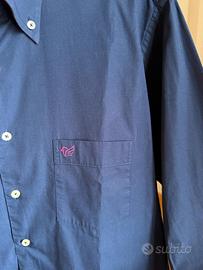 Camicia blu scura “Caporiccio” 100% cotone con dettagli rosa fucsia (colletto, interno polsini) taschino frontale con ricamo logo - Italy🇮🇹