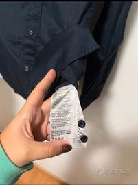 Modello: Camicia soft flex mao. Colore blu scuro e dettagli a righe bianco e blu. Taglia S regular fit. 100% cotone. Collo alla coreana.