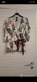 CAMICIA AD INCROCIO A KIMONO BRAND NIRA BARTH MADE IN ITALY FIORATA IN PIU CHE PERFETTE CONDIZIONI TG 44 MANICHE A 3/4 ARRICCIATE