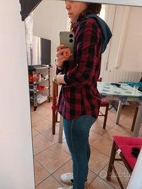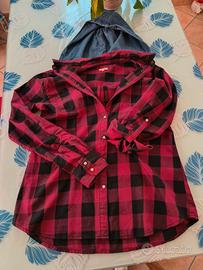Camicia bordeaux 100% cotone, con cappuccio colore jeans.