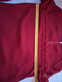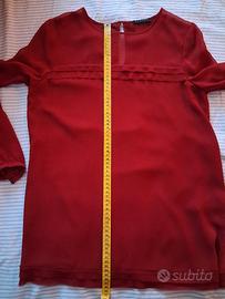 Camicia/blusa bordeaux con maniche e parte alta in trasparenza, il resto è foderato effetto raso.
