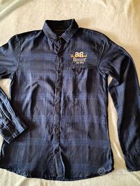 bellissima camicia in caldo cotone, con delicata fantasia a quadri verdi e blu, marca Boxeur des rues, taglia M, misure spalle cm 47, ascelle 51, lunghezza 72.