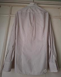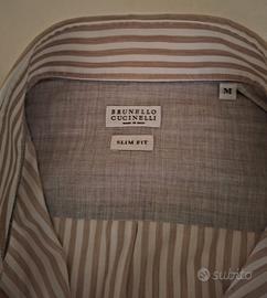 Camicia Brunello Cucinelli, tg. M, slim fit, 100% cotone. Righe bianche e beige.