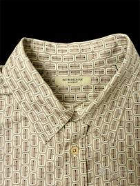 Camicia originale Burberry London, produzione Made in UK, in condizioni praticamente perfette. Modello raro con pattern geometrico "buckle" tipico delle collezioni Burberry dei primi anni 2000. Tessuto di alta qualità, bottoni originali Burberry, cuciture impeccabili e nessun segno di usura su colletto o polsini, Perfetta per collezionisti, amanti del vintage Burberry o per chi cerca un capo elegante e distintivo.