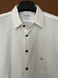 Vendo Camicia Calvin Klein bianca con logo CK e bottoni neri, Extra Slim Fit, Elasticizzata.