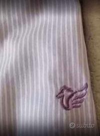 Vendo meravigliosa camicia caporiccio a righe viola nuova come da foto per taglia errata la taglia in questione è una 48/18 corrispondente ad una XL da tabella valore di commercio circa 103 euro io la vendo 80 euro chi interessato mi contatti pure.