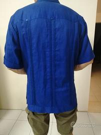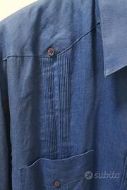articolo tipico cubano, casacca/camicia materiali lino /viscosa con finitura in risalto e tasche mai indossato colore turchese l'effetto del tessuto sciupato è tipico del lino taglia large pagamento bonifico