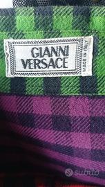 Presente etichetta originale "Gianni Versace Made in Italy" perfettamente conservata, garanzia di autenticità del pezzo. Realizzata in pregiata lana flanella di medio peso. La trama, visibile nei dettagli macro, mostra un intreccio serrato di filati nobili che garantisce colori vibranti e una mano morbida.
