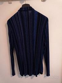 Camicia in cotone elasticizzato rigata molto luccicante, Lunghezza manica cm.66 – lunghezza davanti cm.67 – lunghezza dietro cm.67 – spalla cm.48 – girovita cm. 80