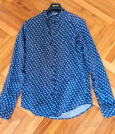 Camicia sartoriale 100% made in italy di Camiceria Milano, colore azzurro con pois blu notte, perfetta per ufficio o serate importanti ma adatta anche per serate tra amici, ottima vestibilità, perfette condizioni