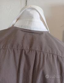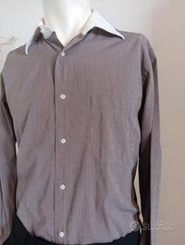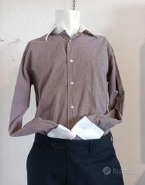Camicia Corneliani Collection Made in Italy, taglia 41 (16, corrisponde a una L). Colore marrone con micro-quadro bianco, colletto e polsini bianchi a contrasto , bottoni bianchi e taschino sul petto. Vestibilità classica, tessuto 67% cotone – 30% nylon – 3% elastan: leggermente elasticizzata e molto confortevole. Stile sartoriale anni 2000 Condizioni ottime, senza difetti rilevanti. Misure Spalle 47 cm Torace 57 cm Lunghezza manica 66 cm Lunghezza totale 80 cm