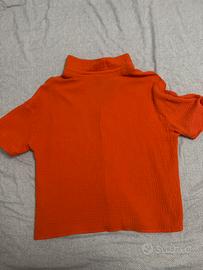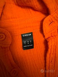 Camicia corta da donna color arancione brillante, perfetta per la stagione estiva ☀️ Modello con maniche corte, colletto alla coreana e chiusura con bottoni frontali. Presenta anche una tasca sul petto che aggiunge un tocco casual. Il tessuto è leggero e leggermente goffrato, molto fresco e comodo da indossare. Ideale per outfit casual, vacanze o giornate calde. Marca: SHEIN Taglia: XS (EU 34 / US 2) Condizioni: Ottime condizioni, usata una volta Colore: Arancione Vestibilità: Crop / corta Perfetta per: •Outfit estivi •Look casual o streetwear •Abbinamenti con jeans, shorts o gonne 📦 Spedizione veloce 💬 Disponibile per qualsiasi domanda o foto aggiuntive