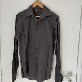 Camicia uomo Ovs trend in ottimo cotone operato grigio antracite , modello fine anni anni 90 minimalista con grande colletto con stecche, polsini alti e vestibilità slim.