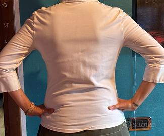 Vendo camicia Nara bianca elasticizzata con bottoni e volant nella scollatura. La manica è a 3/4.