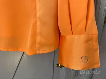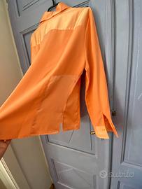 Colore: arancio pesca, con dettagli satinati su spalle, polsini e fianchi che donano un tocco raffinato.