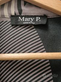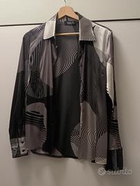 Bellissima camicia da donna, con una stampa astratta elegante in toni di nero e grigio.