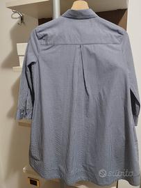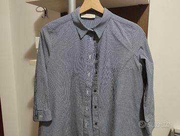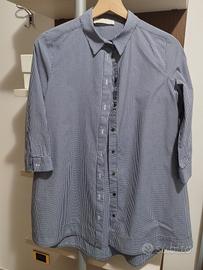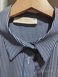 Camicia da donna Vicolo usata pochissimo taglia S lunga e svasata con tasche laterali a quadretti piccoli bianchi e blu manica a tre quarti piega baciata dietro.