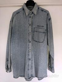 Camicia vintage Armani Jeans in denim delavè made in Italy. Colore blu/azzurro. Taglia donna M/L. Fit anni 80 quindi attualissimo. Misure esatte in centimetri: ampiezza petto ascella ascella 61/spalle 55 ,lunghezza davanti 71/dietro 78 , lunghezza esterna spalla-polso 53. Condizioni eccellenti.