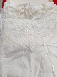 Salve vendo una meravigliosa camicia ricamata 100% Puro Lino capo importante di alta biancheria da sposa mai indossata Quindi ancora nuova ma essendo che sono passati tanti anni ho preferito lavarla ma la camicia è ancora nuova. Come si vede dalle foto è un capo meraviglioso con ricamo finemente realizzato a mano con strisce di macramè ricamato e trasparente che rende la camicia importante e bella... ALTA BIANCHERIA ❤️