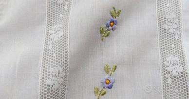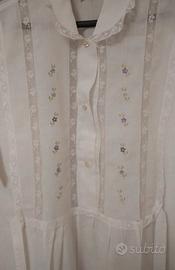 Bella camicia da notte anni 80 con bottoni sul davanti( adatta ad allattamento). In tessuto misto cotone ( vedi foto) colore bianco arricchito da pizzo e piccoli ricami. Condizioni perfette. Taglia L- lunghezza cm.114 - Spalla cm. 44.
