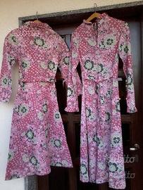 Camicia da notte con vestaglia abbinata, in nylon tg. 3 , sfondo rosa antico, motivo floreale come da foto, vestaglia con tasca, entrambe con cintura, mai usate, made en italy.