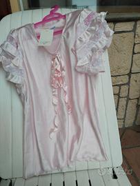 Camicia da notte in raso rosa maniche corte con inserti in pizzo tg 44 mai indossata