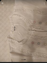 vendo camicia da notte di seta bianca con ricami fatti a mano colorati, taglia 52 con inserti e bordatura in pizzo arriva direttamente dal mio corredo.