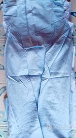 Camicia da notte donna, colore celeste, cotone batista, manica corta, con merletto
