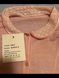 Lunga camicia da notte Apertura con 4 bottoni Colletto raffinato come anche i polsini che hanno il bordo in raso e bottoncino Tessuto: 70% acrilico 30% lana Tg V (50) Colore rosa Marca IMEC Made in Italy Nuova