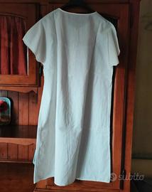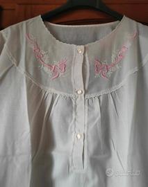 Camicia da notte con ricamo di fiori rosa. Tre bottoni in madreperla