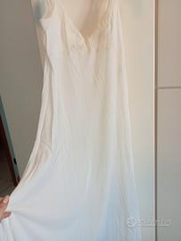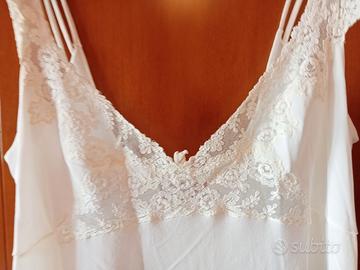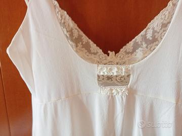 Camicia da notte in crepe,panna,con applicazioni di merletto. francese,lunga,con bretelline,stile impero,anni 80,tg.m.Molto elegante e moderna.Prezzo ribassato varie volte.