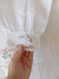 Camicia da notte in puro lino e lavorazione ad intaglio rigorosamente realizzata a mano. Taglia L-XL nuova mai indossata.