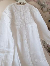 Camicia da notte in puro lino ad intaglio nuova