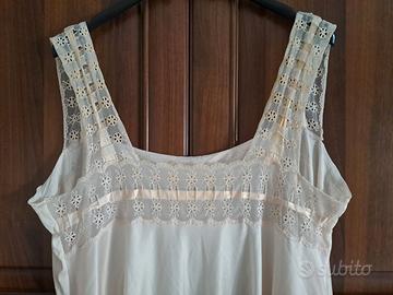 Contraddistinto da una generosa scollatura dai contorni in pizzo trasparente con un nastrino di raso all'interno, il capo in raso leggero è fresco, frusciante e facilissimo da lavare. I bordi si presentano arricciati.