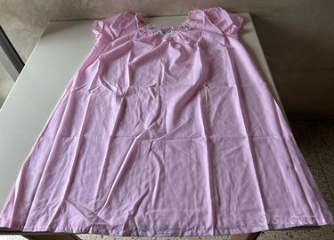 Camicia da notte di cotone, colore rosa con ricamo fiori. Taglia unica.