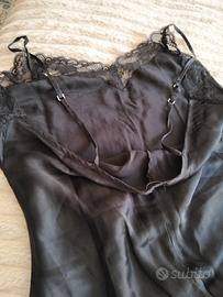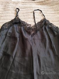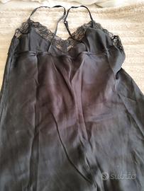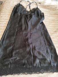 Camicia da notte con rifiniture in pizzo nero, mini con bretelline regolabili taglia l