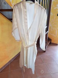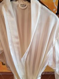 Camicia da notte donna pura seta taglia L come da etichetta in fotografia. Colore bianco gessato, vedere foto. Usata un paio di volte, come nuova.