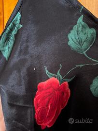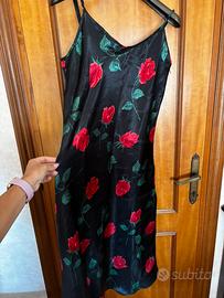 Camicia da notte con spalline sottili in seta. Sfondo nero con fiori rossi. Leggermente rovinato in un punto poccolissimo come in foto. Taglia I