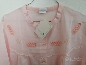 Camicia da notte a maniche lunghe. Ricami nella parte alta. Apertura con bottoni.