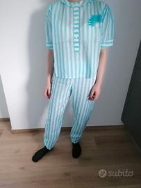 1) Camicia da notte bianca vintage puro cotone ricamata nuova Made in Italy. Camicia da notte - négligé - vestito - abito - veste - camicia da camera - vestaglia da donna, di ottima fattura. Con bellissimi dettagli e ricami. Carina anche come abitino per mare o estivo. Sul retro, c'è un piccola macchiolina chiara, che credo si si formata negli anni di magazzinaggio; non ho provato a lavarla, credo possa essere pulita senza problemi; il capo è bianco, quindi può anche essere candeggiato. La macchiolina è chiara, risulta quasi invisibile. Euro 12. 2) Camicia da notte - pigiama - abitino vintage nuovo Made in Italy, righe bianche e azzurre. Pigiama di ottima fattura. In due pezzi, pantalone e parte superiore. Con fiore ricamato e dettagli molto graziosi. Made in Italy, puro cotone 100%. Carino anche come abitino per mare o estivo. Euro 12. Capi nuovi mai indossata, è un fondo di magazzino che risale a diversi anni fa, credo anni '80 o '90, di un negozio di manifatture tessili di alta qualità e tutte prodotte in Italia. La modella in foto è alta 1,70 m, per 60 kg di peso, di taglia 42.
