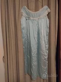 Camicia da notte vintage in raso, completa di vestaglia, colore celeste, con pizzo e ricami, taglia 48 (4)