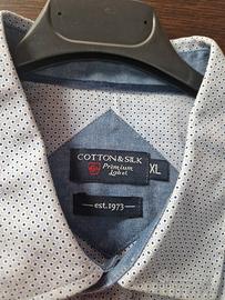 camicia da uomo cotton & silk manica corta, 100% cotone, mai usata. Condizioni perfette, taglia XL, fantasia celeste. Etichetta con n 1 bottone di riserva ed istruzioni di lavaggio presente ed integra.