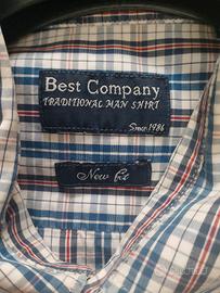 Camicia a maniche lunghe di marca Best Company in taglia XL. II tessuto presenta una trama a quadretti blu, bianchi e bordeaux.
