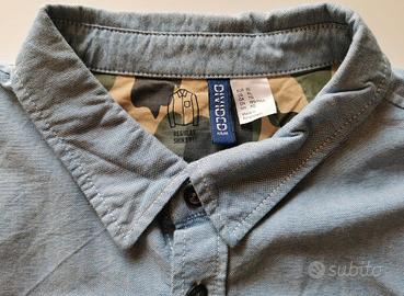 Vendo camicia da uomo ORIGINALE Divided by H&M a maniche lunghe. La camicia è taglia XL in 100% cotone di colore azzurro, con tasca sul davanti e motivo mimetico ai lati. E’ in OTTIME condizioni e non presenta difetti estetici, visto lo scarso utilizzo. E’ in PRONTA CONSEGNA!!!