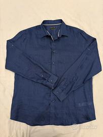 Camicia da uomo in lino blu scuro. Nuova, senza etichetta. Tessuto leggero e traspirante, ideale per la stagione calda. Taglia XXL.
