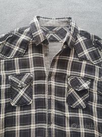 Camicia da uomo nera a quadri Zara Man. 100% cotone. A maniche lunghe, con 2 taschini frontali e 2 bottoni di riserva. Usata pochissimo, senza difetti né segni di usura.