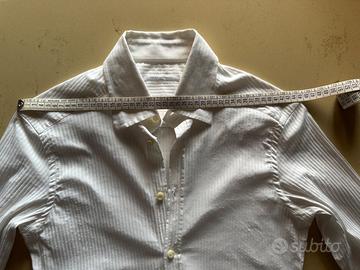 Camicia da uomo taglia M slim Daniele Allessandrini originale 86% cotone 10%poliestere 4% elastane chiusura con bottoni a vista collo classico tinta unita maniche lunghe polsini con bottoni senza tasche elasticizzato con motivo righe a rilievo Ampiezza spalle 45cm lunghezza 72cm larghezza vita 42 utilizzato poco no perditempo massima serietà possibile ritiro a mano zona Cremona/Brescia