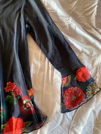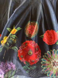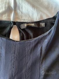 Camicia Desigual, doppio strato blu con motivo floreale sul fondo e nelle maniche. Elastan e viscosa. Taglia S.