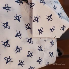 Camicia marca Di Biase taglia S, vestibilità slim fit. Usata un paio di volte da mio figlio quando aveva 14/15 anni. 95% cotone e 5% elastam.