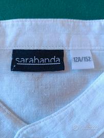 Bellissima camicia Sarabanda, bianca, di lino, con collo alla coreana, a maniche corte, taglia 12 anni, tenuta benissimo. Da ritirare in loco zona Parioli.